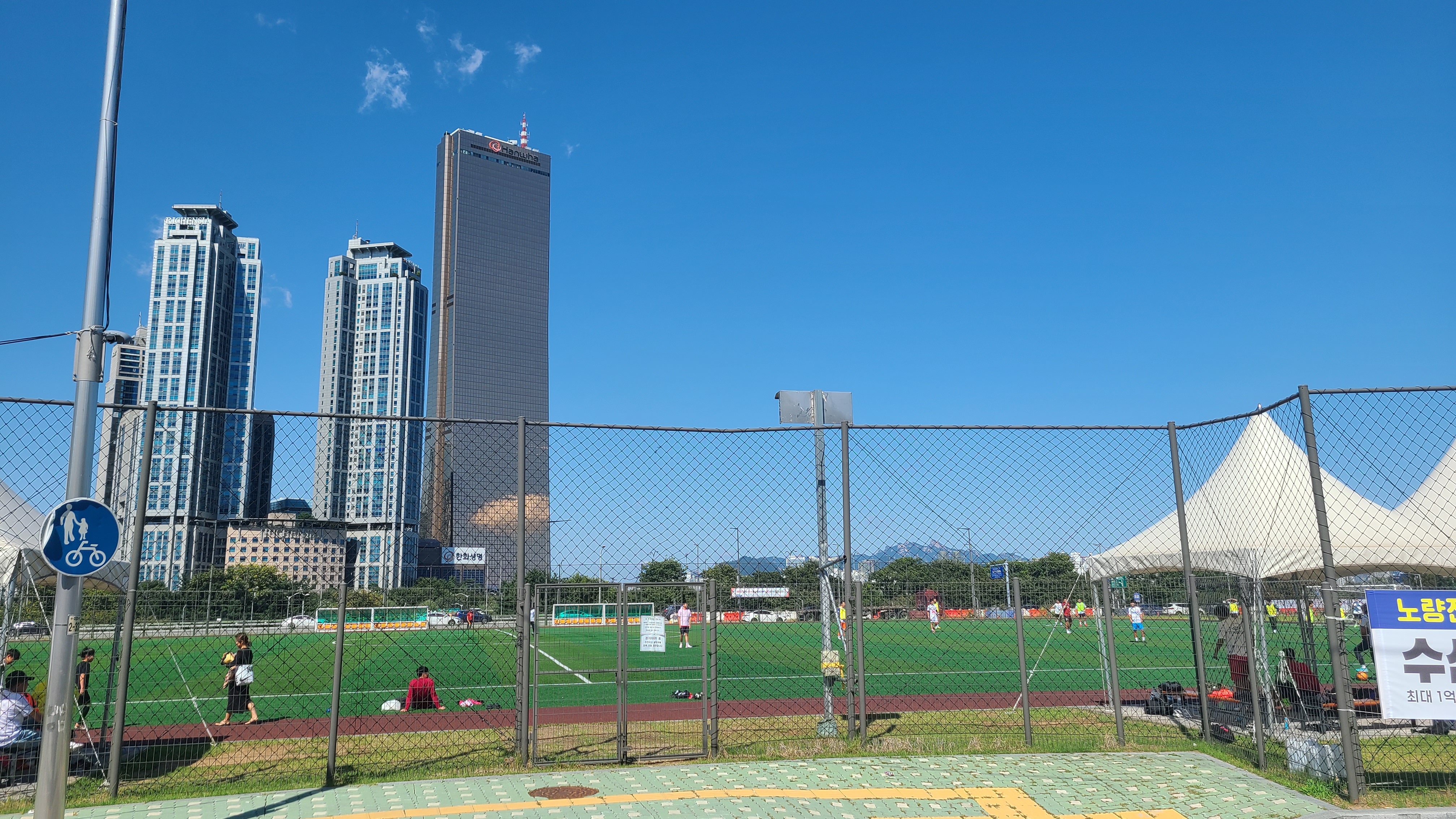 노량진 수산시장 바로 옆에 커다란 축구장이 있습니다.